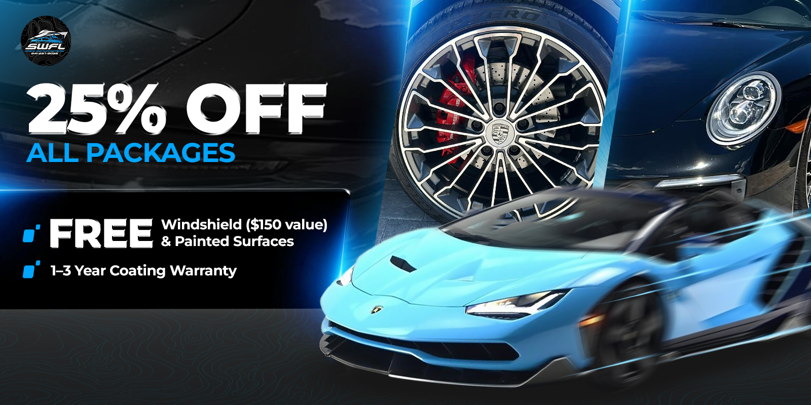 Just for You: Get 25% OFF All Packages + FREE Windshield ($150 Value) & Painted Surfaces + 1–3 Year Coating Warranty!